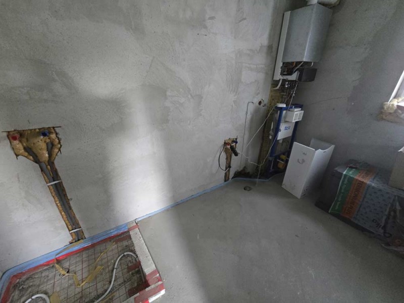 Zamontowane są okna z profili PCV brązowo - białe. Rozprowadzone zostały instalacje elektryczne, wodne, kanalizacyjne i gazowe a ściany zostały pokryte tynkiem. Centralne ogrzewanie i wodę ciepłą zasila kocioł gazowy dwu funkcyjny, częściowo jest to ogrzewanie podłogowe i tradycyjne - z grzejników stalowych.