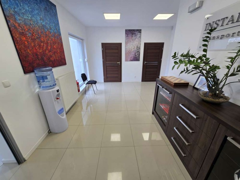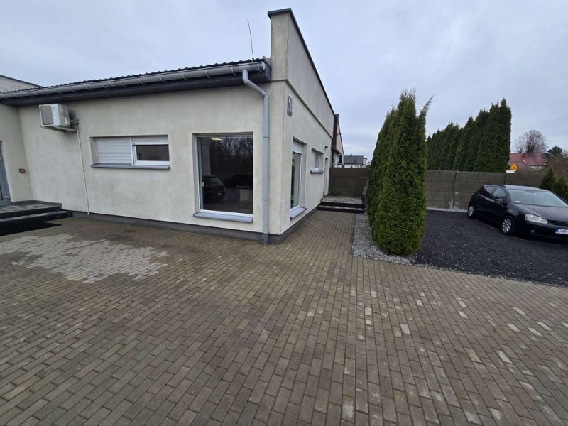 Oferujemy Państwu do wynajęcia budynek użytkowy z przeznaczeniem na biura, usługi, siedzibę firmy, gabinety lekarskie, działalność edukacyjną. Obiekt ten położony jest przy ulicy Zakątek w Ostrowie Wielkopolskim. Jest to budynek biurowo - usługowy, parterowy, wybudowany w technologii tradycyjnej, murowanej. Posadowiony jest na działce o powierzchni 1800 m2. Wewnątrz mamy do dyspozycji holl, 4 pomieszczenia biurowe, salę główną, pomieszczenie magazynowe, 2 łazienki, zaplecze socjalne oraz garaż z 2 bramami wjazdowymi. Lokal ten jest utrzymany w bardzo dobrym stanie technicznym, posiada monitoring, system alarmowy klimatyzatory oraz centralne ogrzewanie z pieca na pellet. Okna z profili PCV posiadają rolety zewnętrzne aluminiowe, podłogi zostały pokryte wielkoformatowymi kaflami ceramicznymi. Na dachu zamontowana została instalacja fotowoltaiczna o mocy 14 kW. Teren posesji jest ogrodzony, i bezpieczny. Parkowanie samochodów zapewnia spory parking.