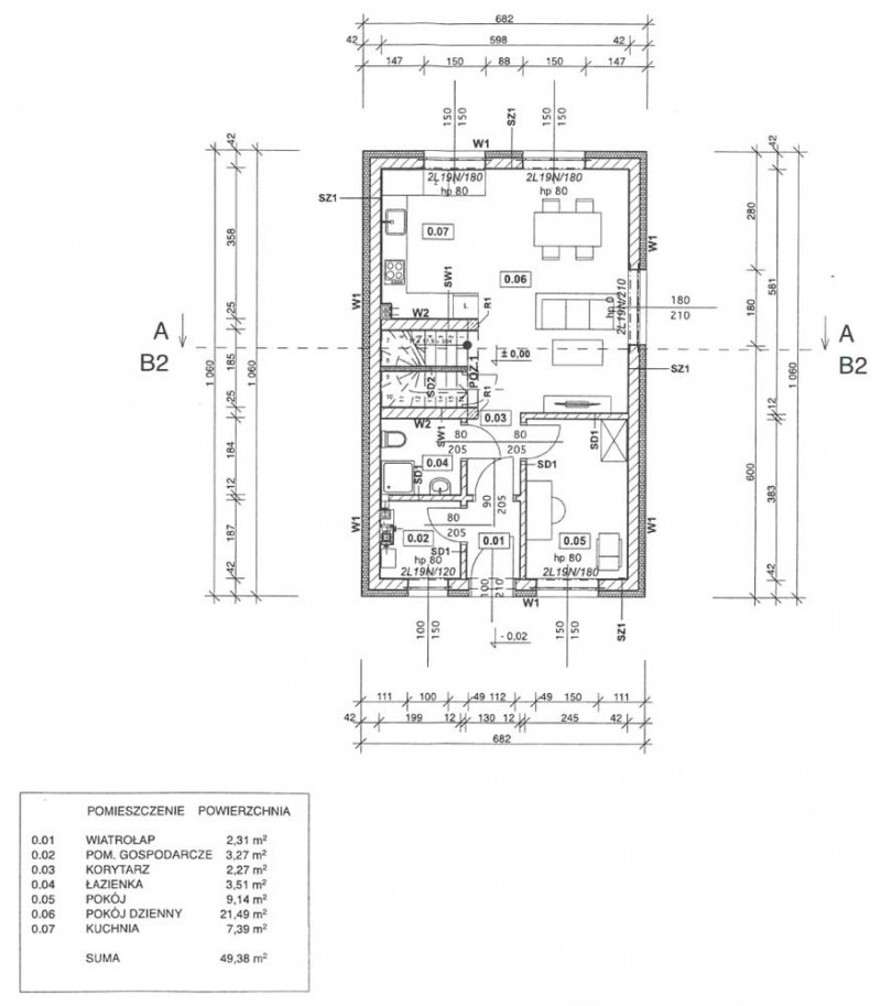Technologia tradycyjna: Pustak ceramiczny Porotherm, ocieplenie 15 cm, dachówka ceramiczna.